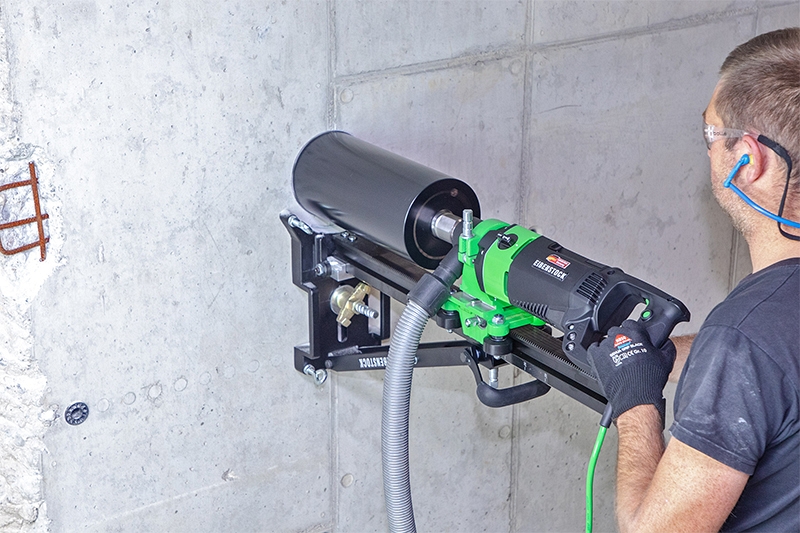 - Ручное и стационарное сверление отверстий в стенах и потолках систем водоснабжения, отопления и вентиляции, где мокрое сверление невозможно (в случаях, когда сверление с использованием воды невозможно)